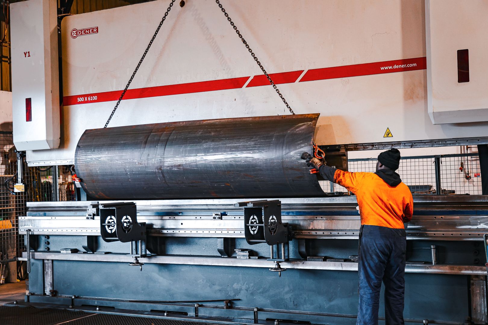 We have a 500 tonne CNC Press Brake at our Westport workshop, with a full suite of tooling & dies to suit all plate thicknesses and can press up to 6m wide, with 500 tonnes of brute force that can bend the thickest, hardest & heaviest steel plate.