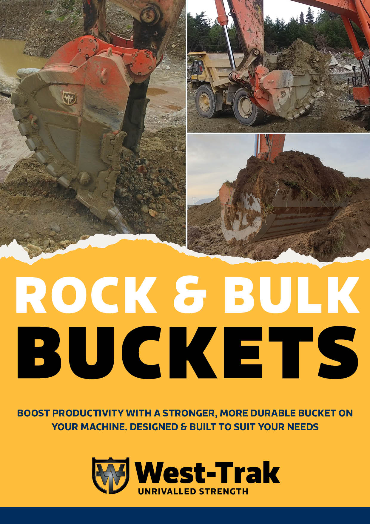 Boost productivity & performance with a tougher West-Trak Bucket on your machines! Designed to world class engineering standards, built from the toughest wear steels & fitted with the worlds most trusted G.E.T systems. Available for all brands of 20-100 tonne size Excavators!