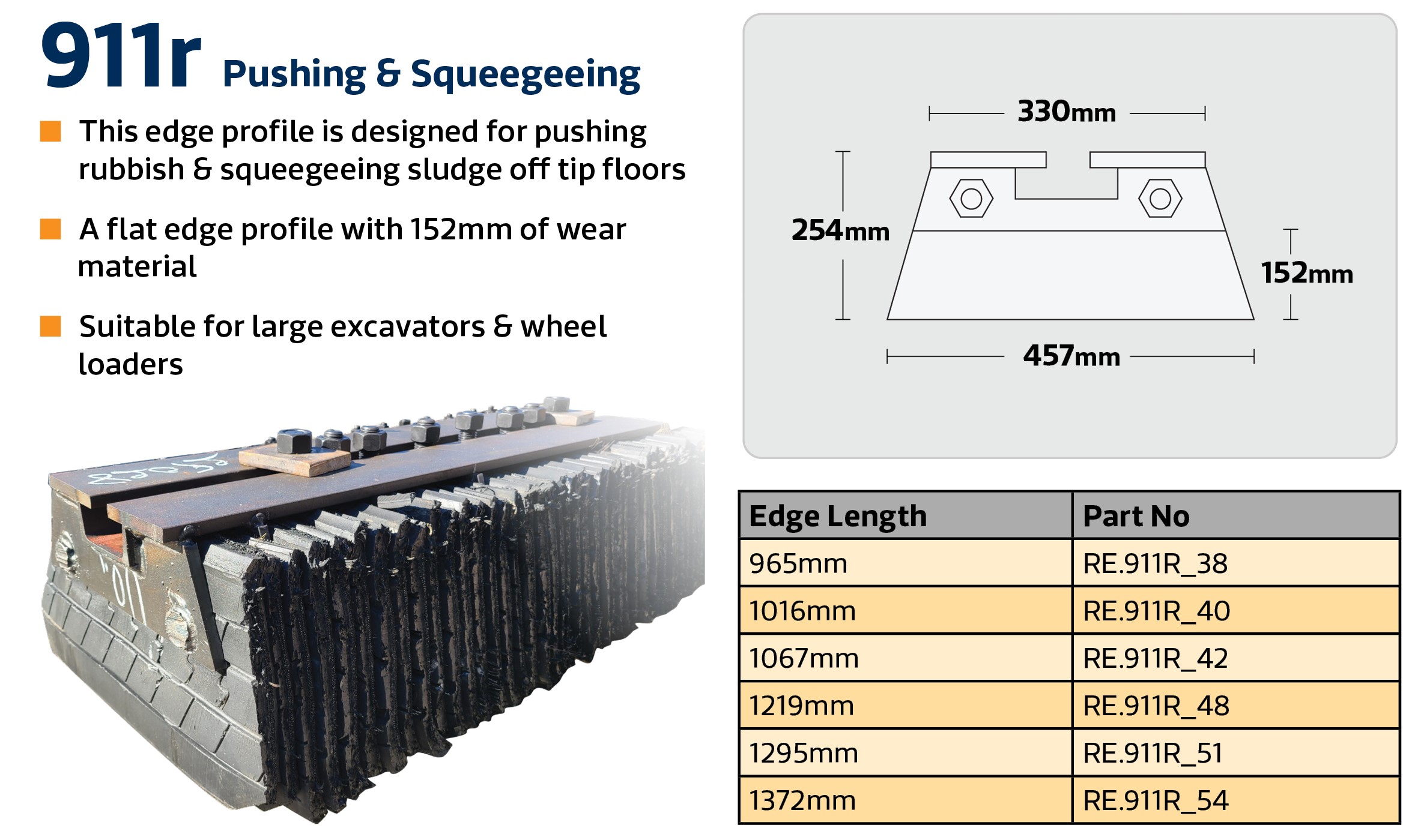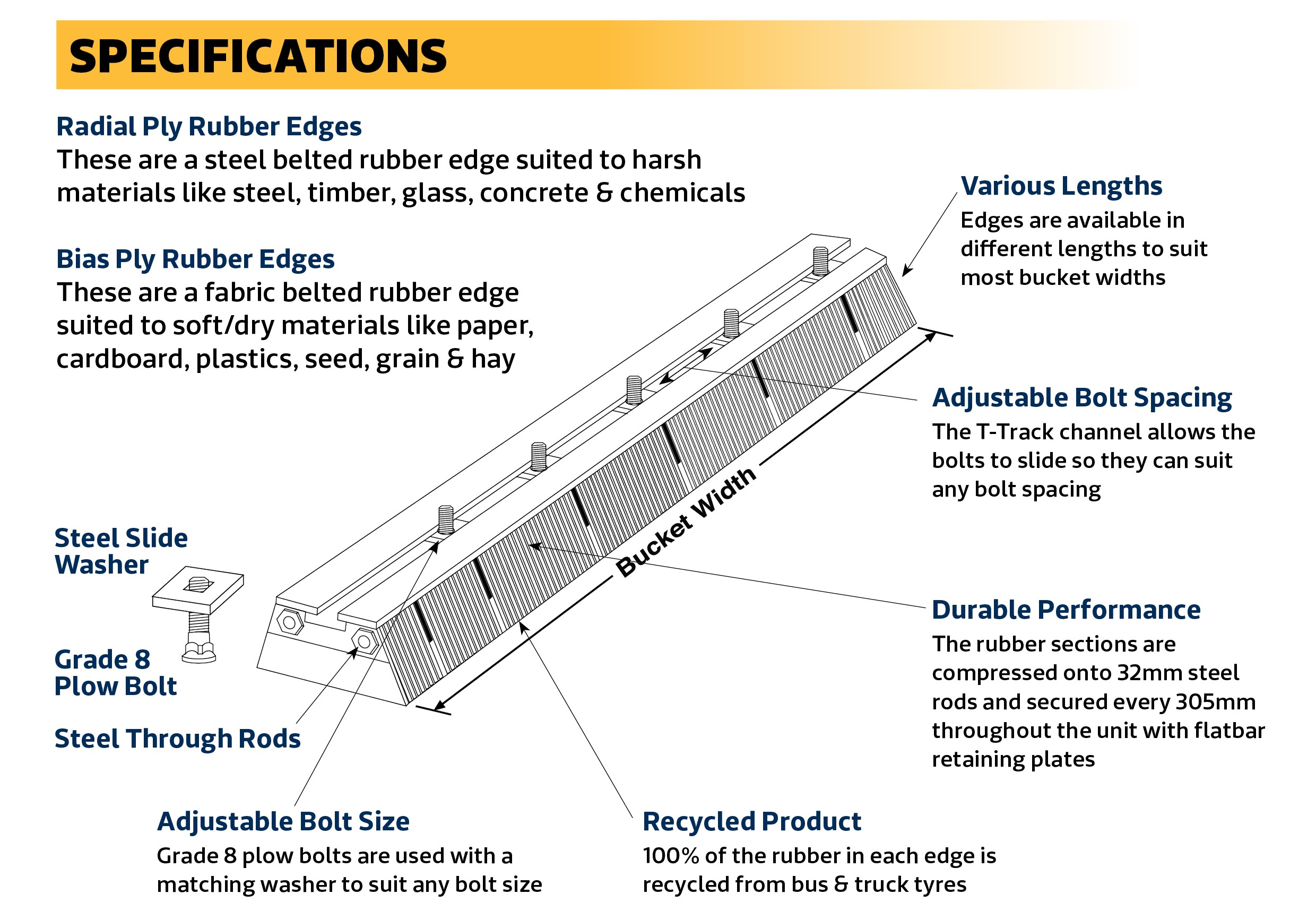 Steel Belted, Radial Ply, Bolt-on Rubber Cutting Edge.