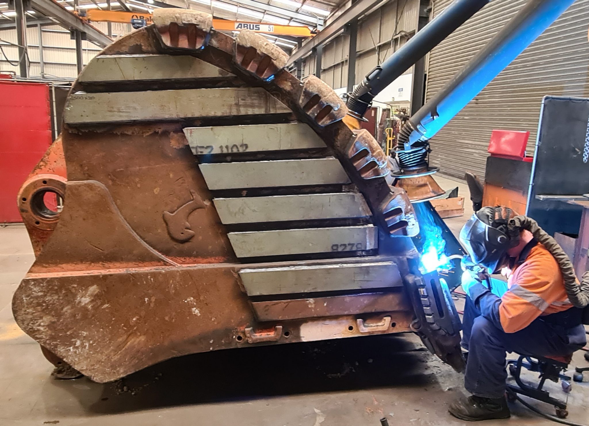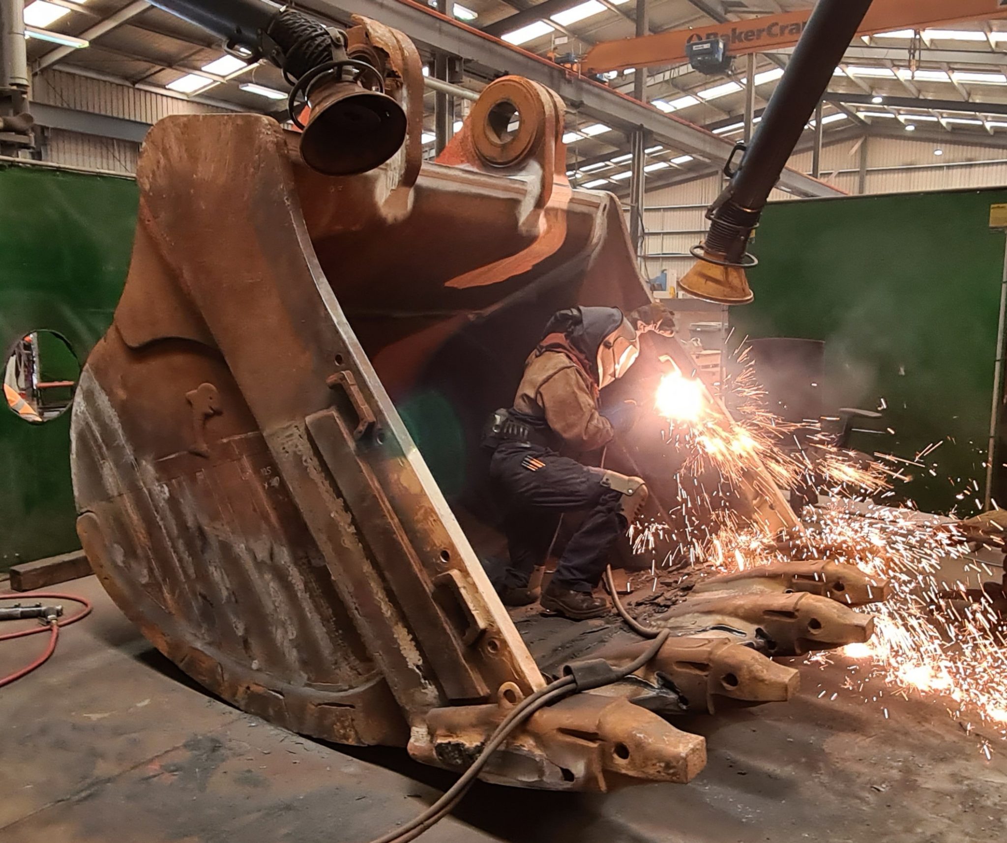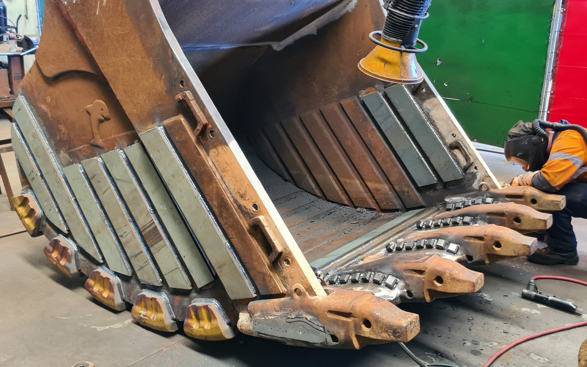 A 5.2m3, 8 tonne, Hitachi EX1200 rock bucket came into our workshop last month for a full refurbishment which included cutting off worn plates, repairing cracks and refitting new wear plates in the high wear areas. Working in one of the hardest, most abrasive gold mines on the West Coast, this bucket needed a lot of wear protection in the right areas to last the distance – it came to the right place for that!