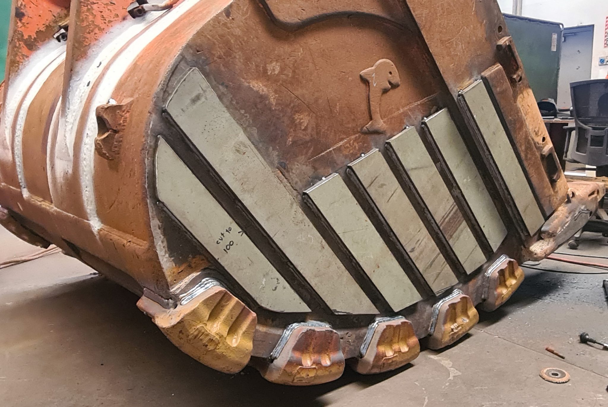 - Top & bottom of the cutting edge – the cutting edge on larger buckets is a softer, structural grade of steel (G780) for high strength and needs to be covered to stop it wearing thin & losing its structural strength.