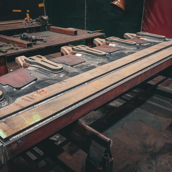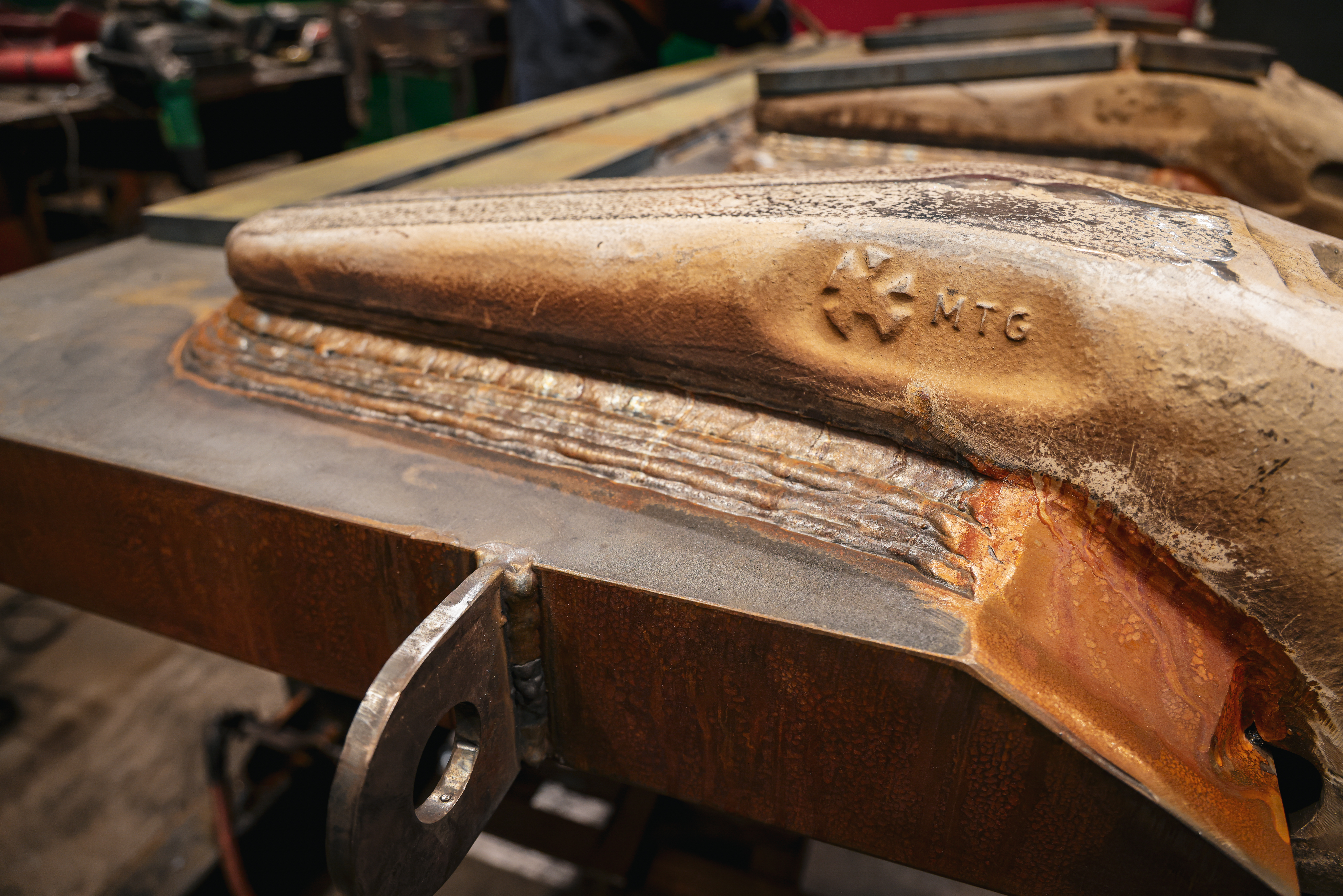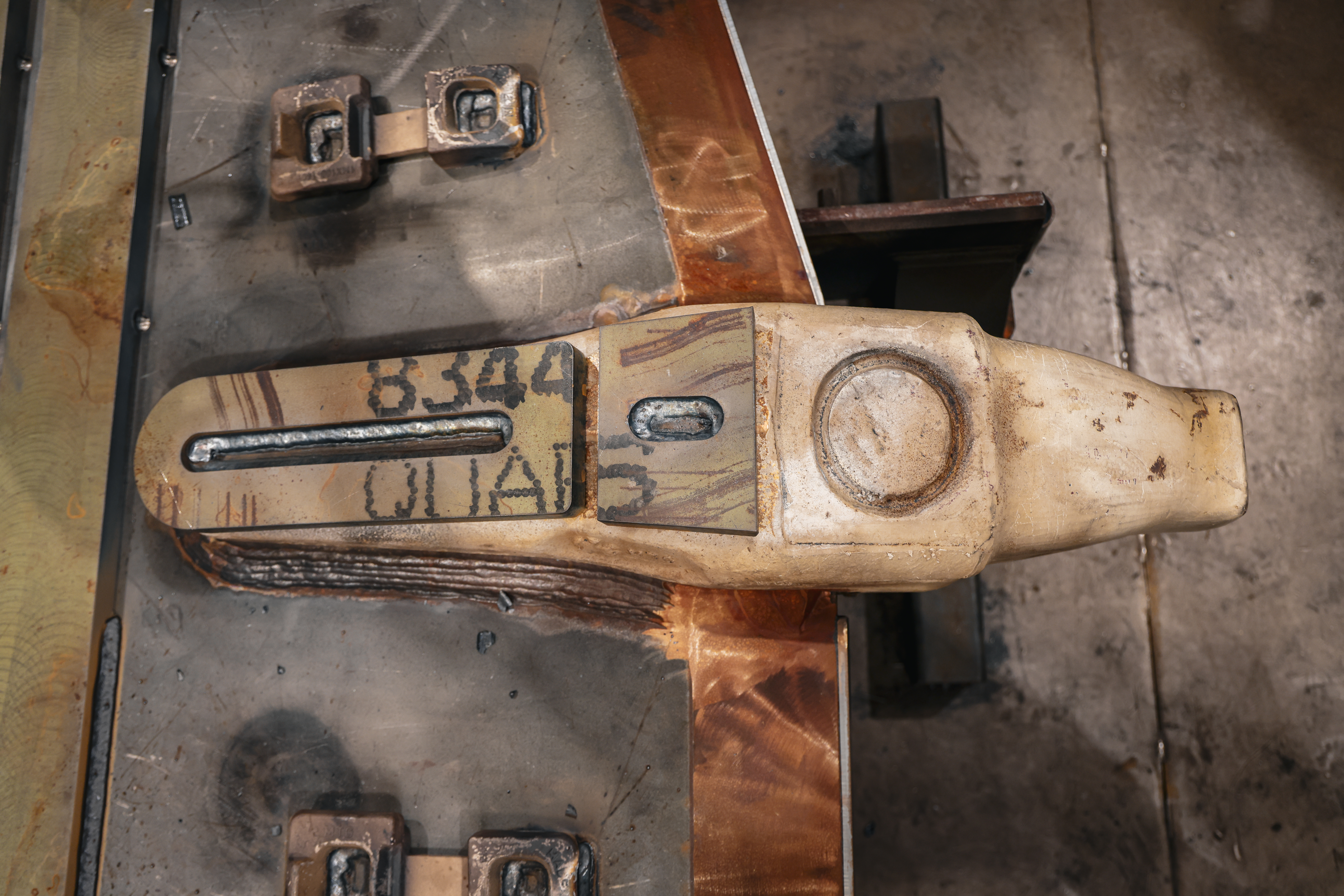 - 100mm thick high tensile plate cut, shaped, and bevelled