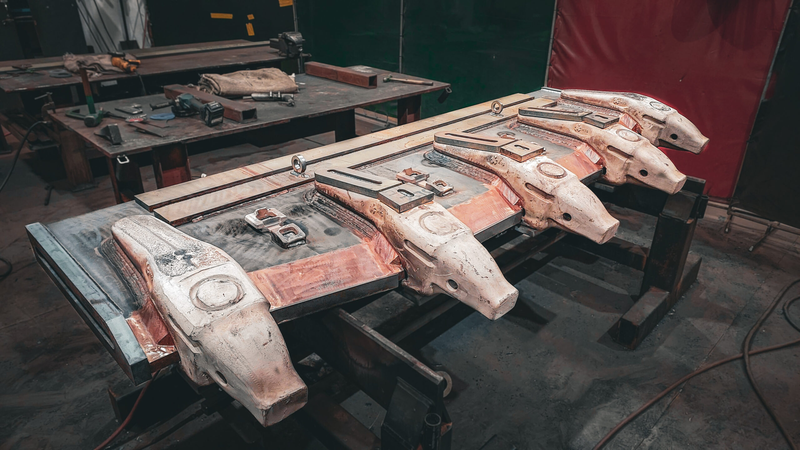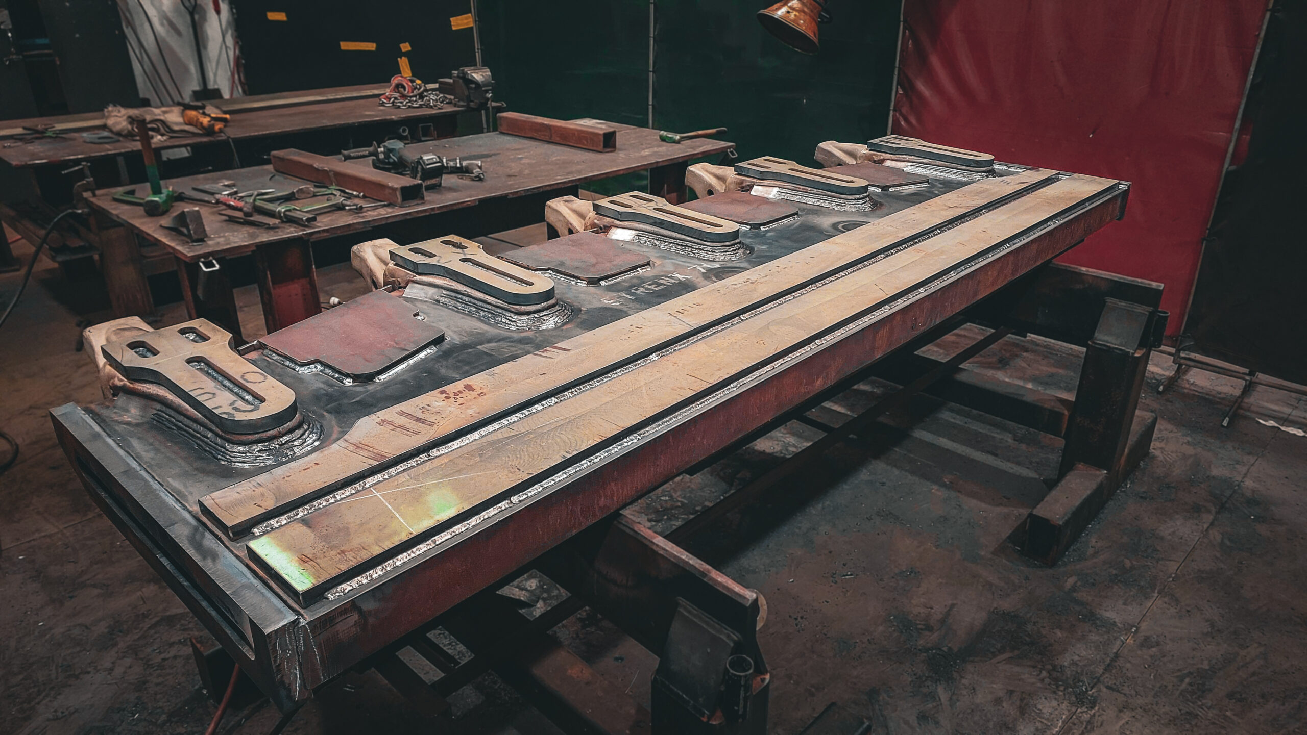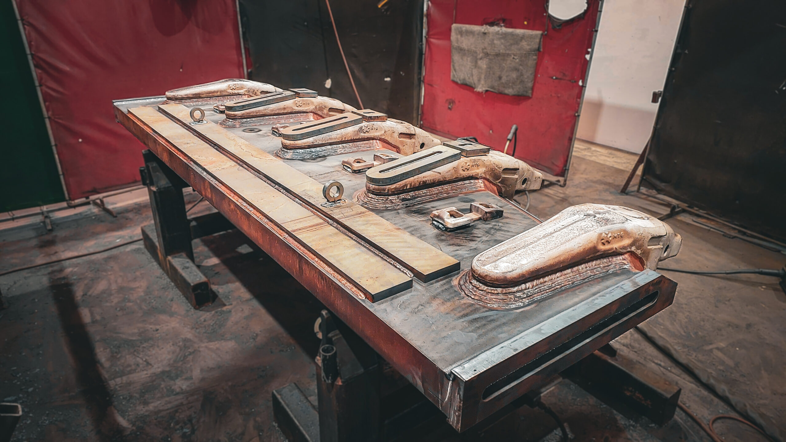 - 100mm thick high tensile plate cut, shaped, and bevelled