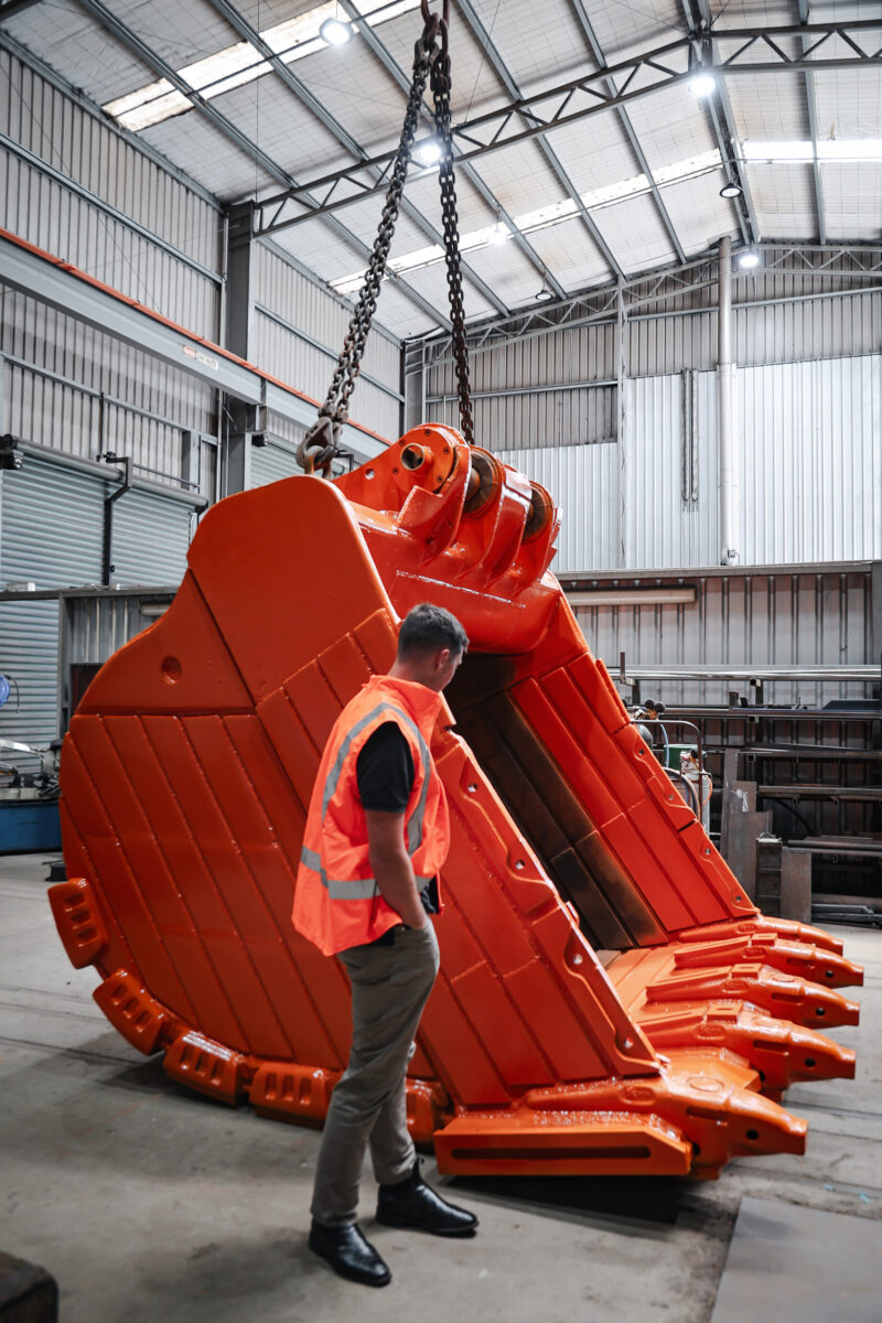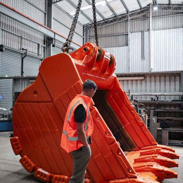 - 100mm thick high-tensile plate: The bucket lip was cut, shaped, and bevelled, ensuring strength and durability for the toughest conditions.