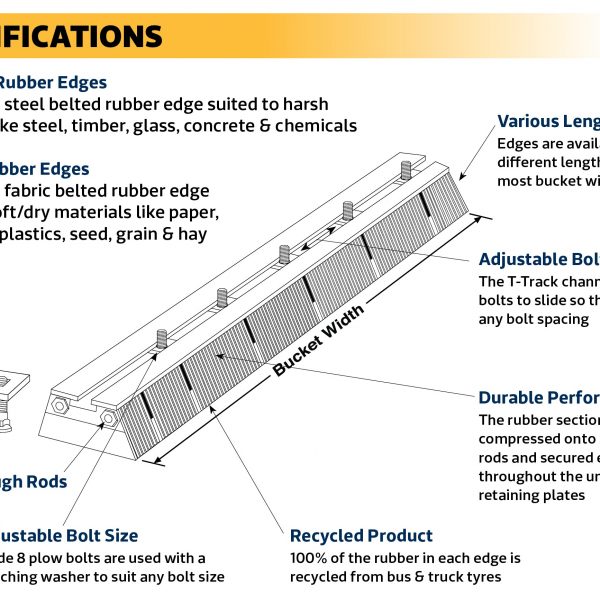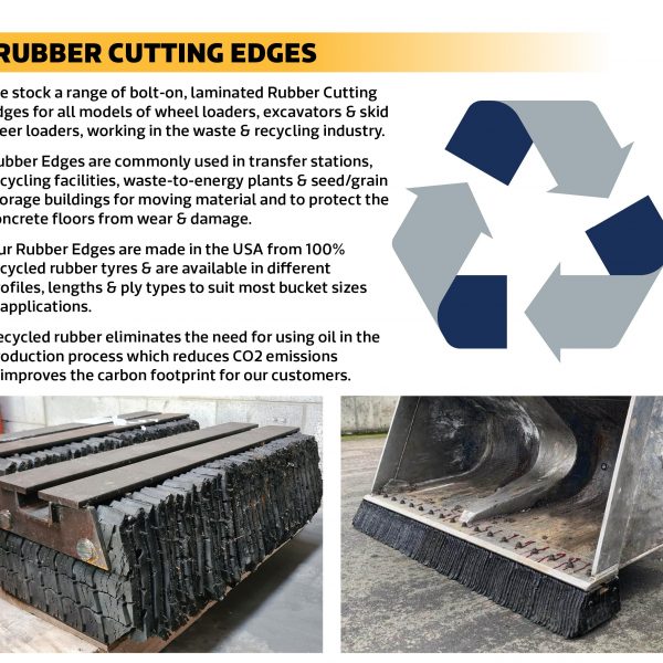 Our Rubber Edges are made in the USA from 100% recycled rubber tyres & are available in different profiles, lengths & ply types to suit most bucket sizes & applications. Recycled rubber eliminates the need for using oil in the production process which reduces CO2 emissions & improves the carbon footprint for our customers. Find out more below & get in touch to discuss your needs!