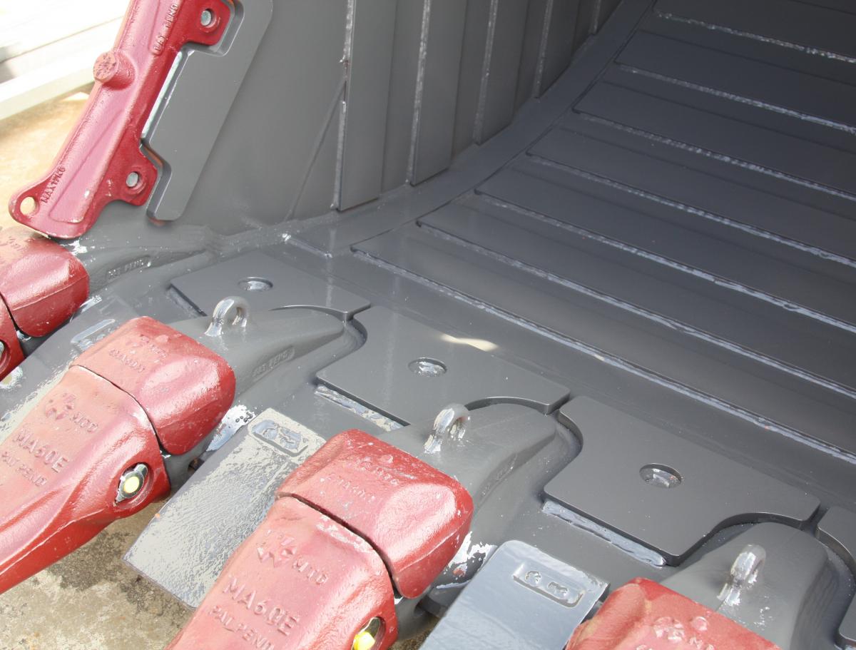 Fitted with a full weld on wear package and the MTG hammer-less teeth & side protectors, delivers the best digging performance and G.E.T reliability.
