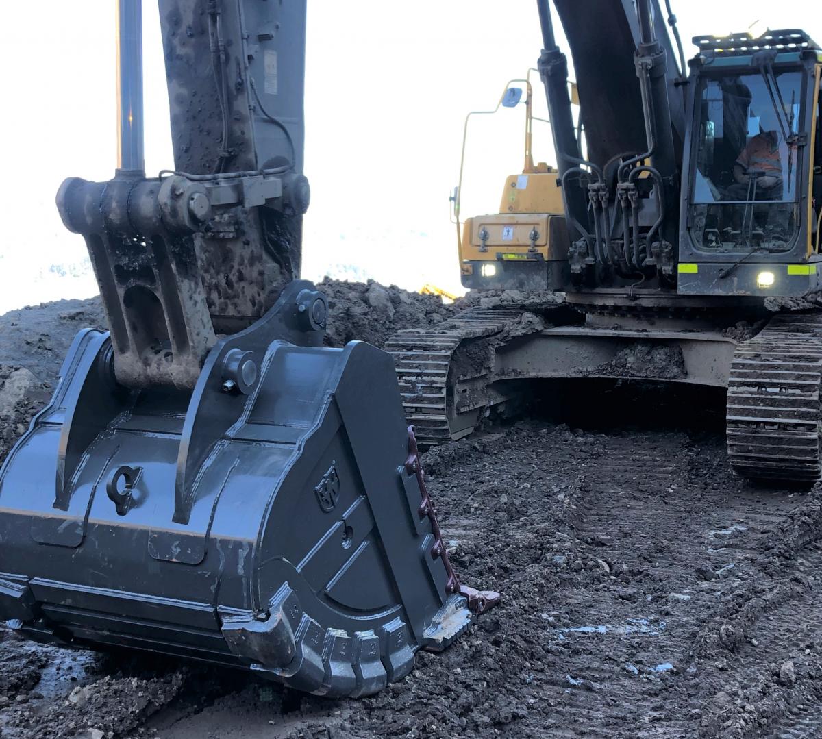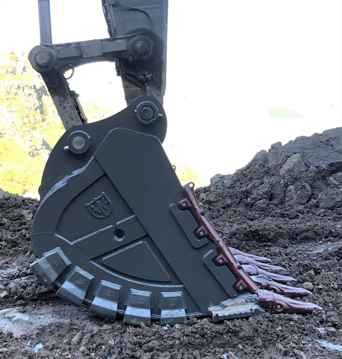 This machine is working in some of the hardest, most abrasive Basalt rock in the world, so a heavy duty West-Trak Rock Bucket was called for.