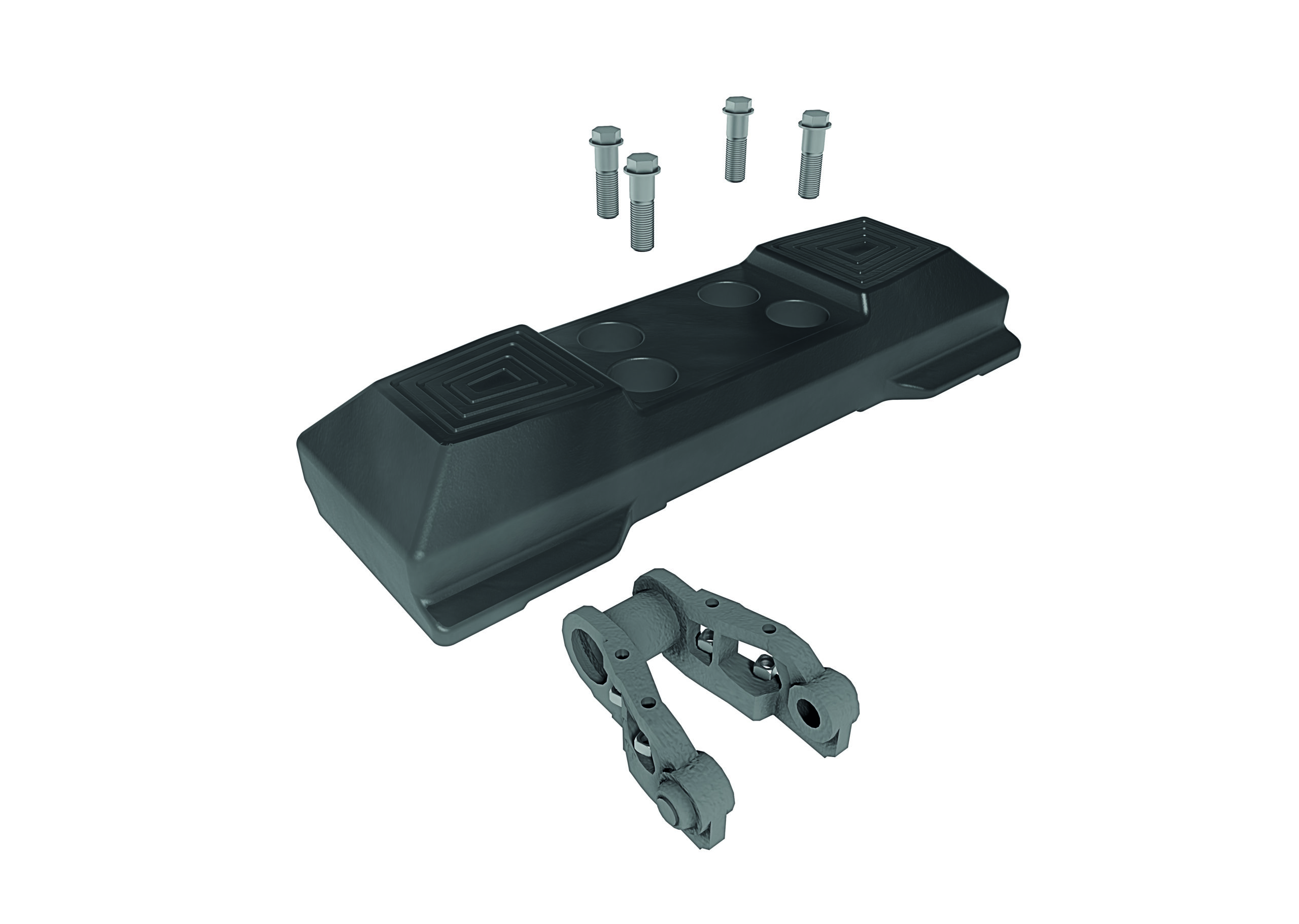 • Bolt-on rubber pads are also highly durable with secure fitment ensuring longer wear life and less debris build-up between the pad and the track shoe.