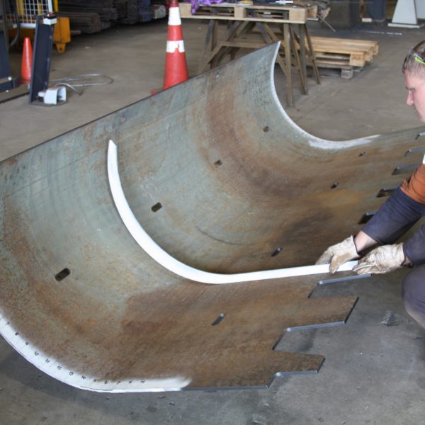 Check out this timelapse video of our 500T press brake forming a 3.5m wide, 12mm thick 450HB abrasion resistant bucket liner for a Cat 992 wheel loader. Send us your drawings & templates, or we can measure onsite for you and get it perfectly pressed to match, just like this one! Get in touch with us for all your plate forming needs. 0800 654 323.