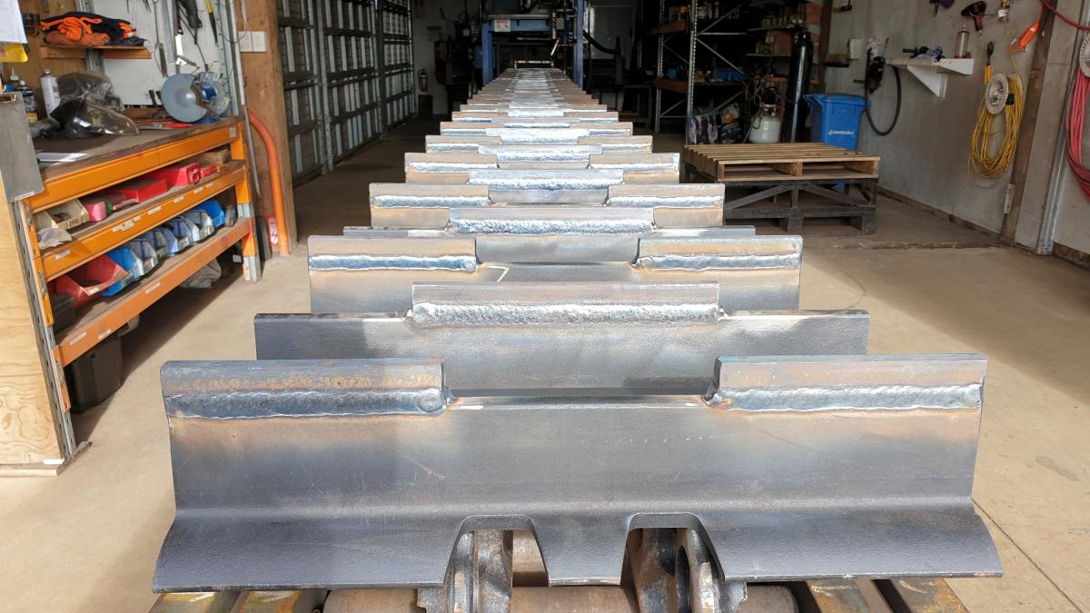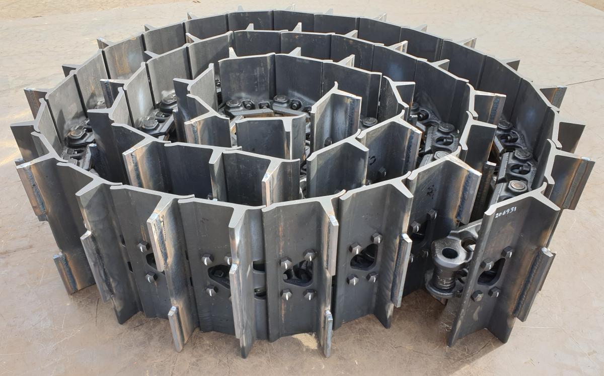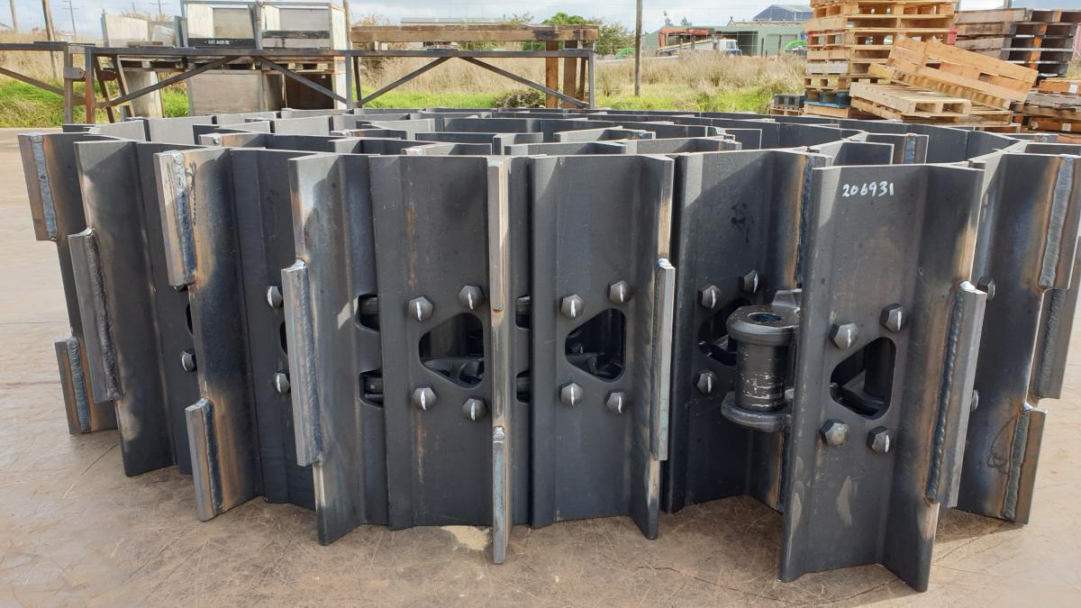 This custom built Track Group for a Sumitomo SH240TL is fitted with Single Bar Track Shoes & extra Grouser Bars welded in a staggered pattern to provide the maximum steep slope traction. This machine is going places with 120mm overall lug height!
