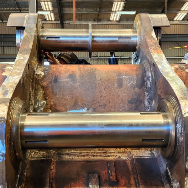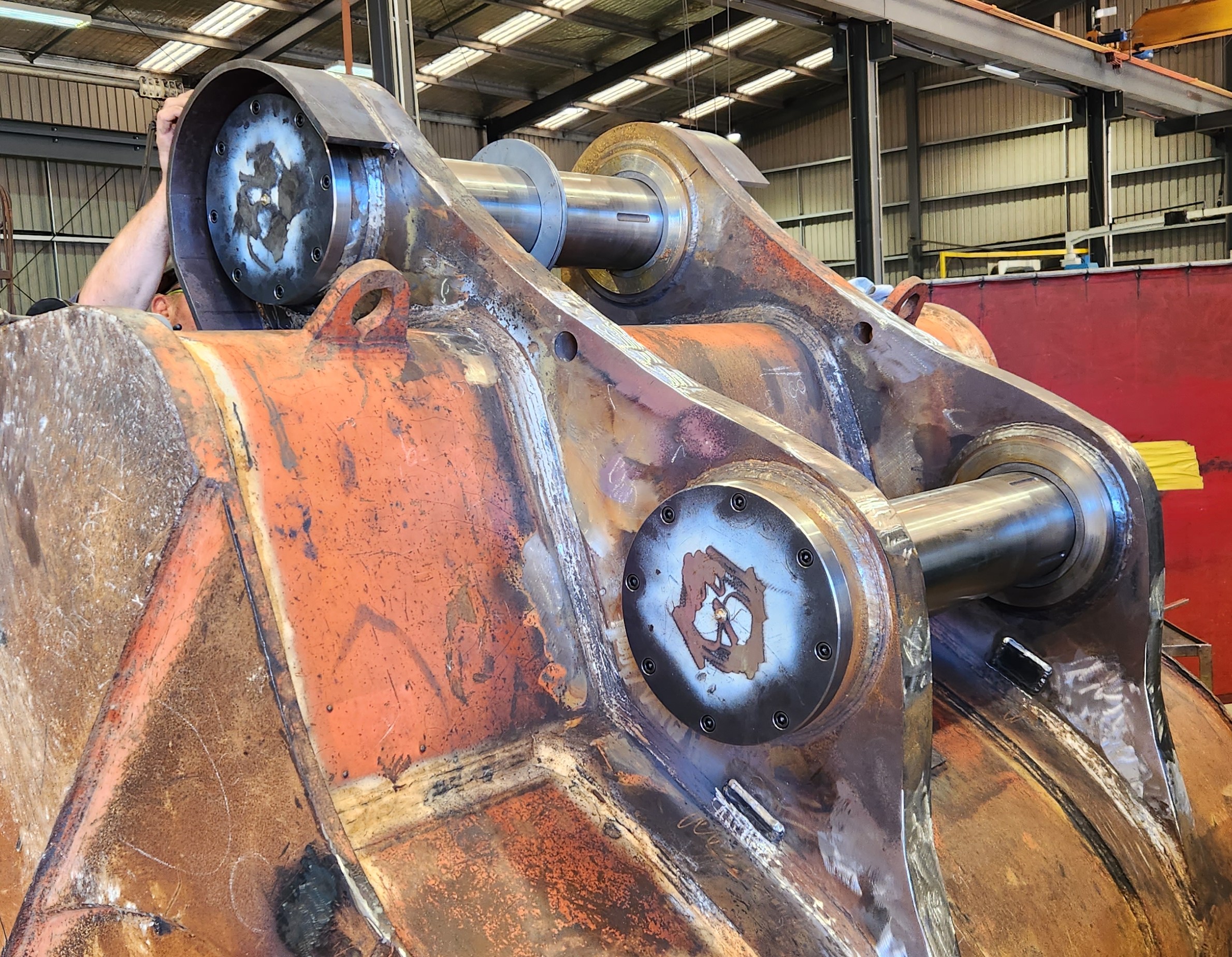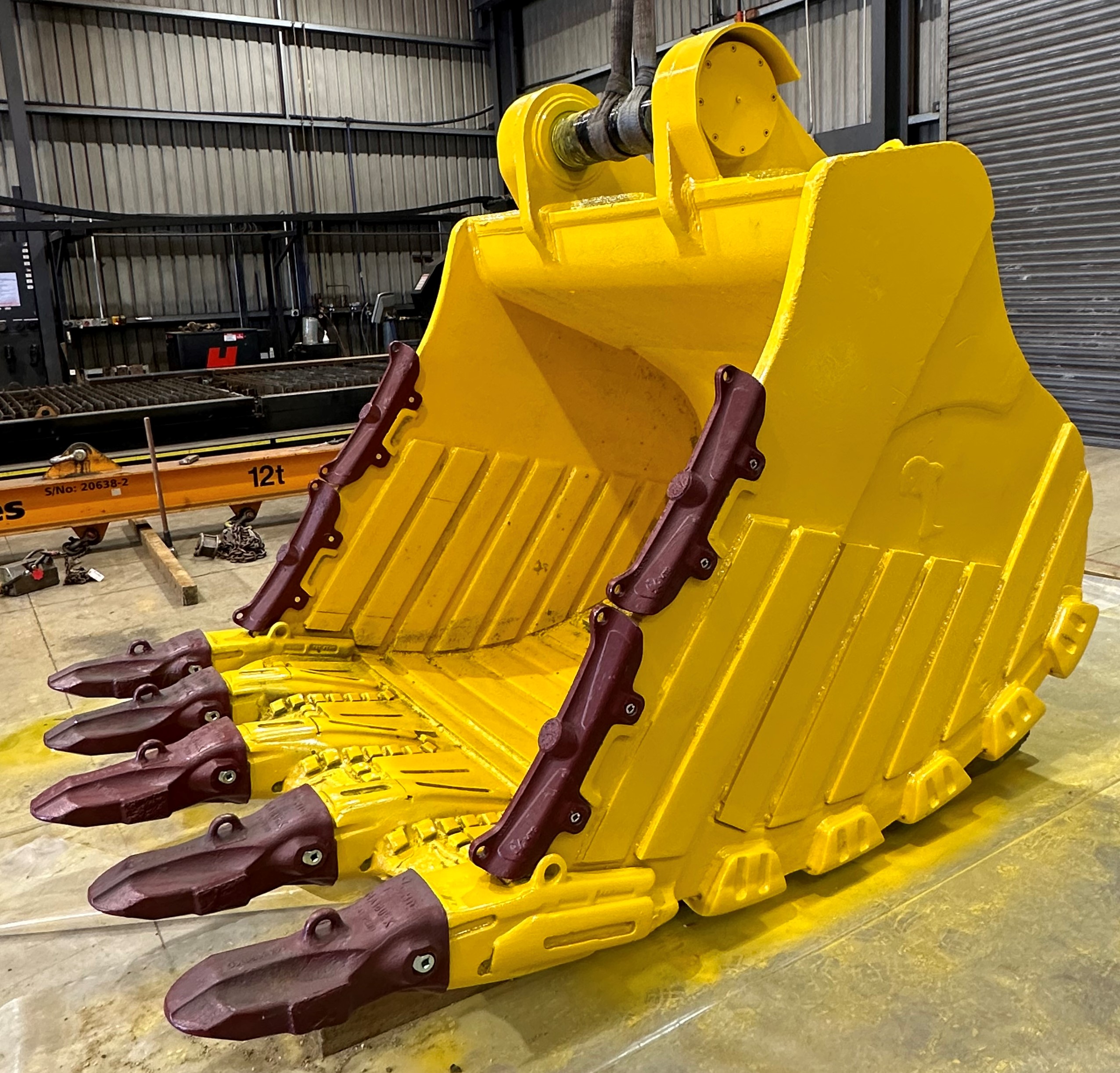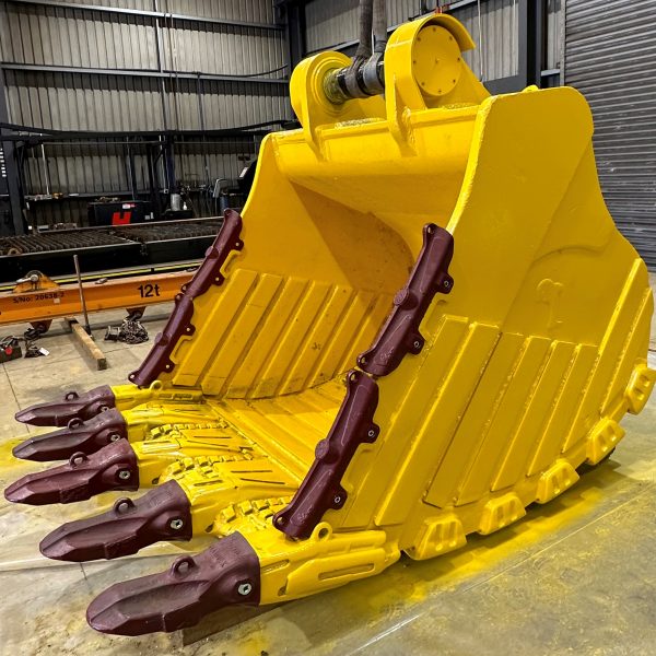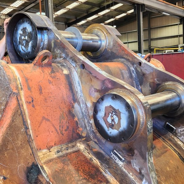 Here’s some pics of a recent project where we converted a Hitachi EX1200 Rock Bucket to fit a Komatsu PC1250. Working with the biggest gold miners in NZ earns us a special place at the business end of their machines!