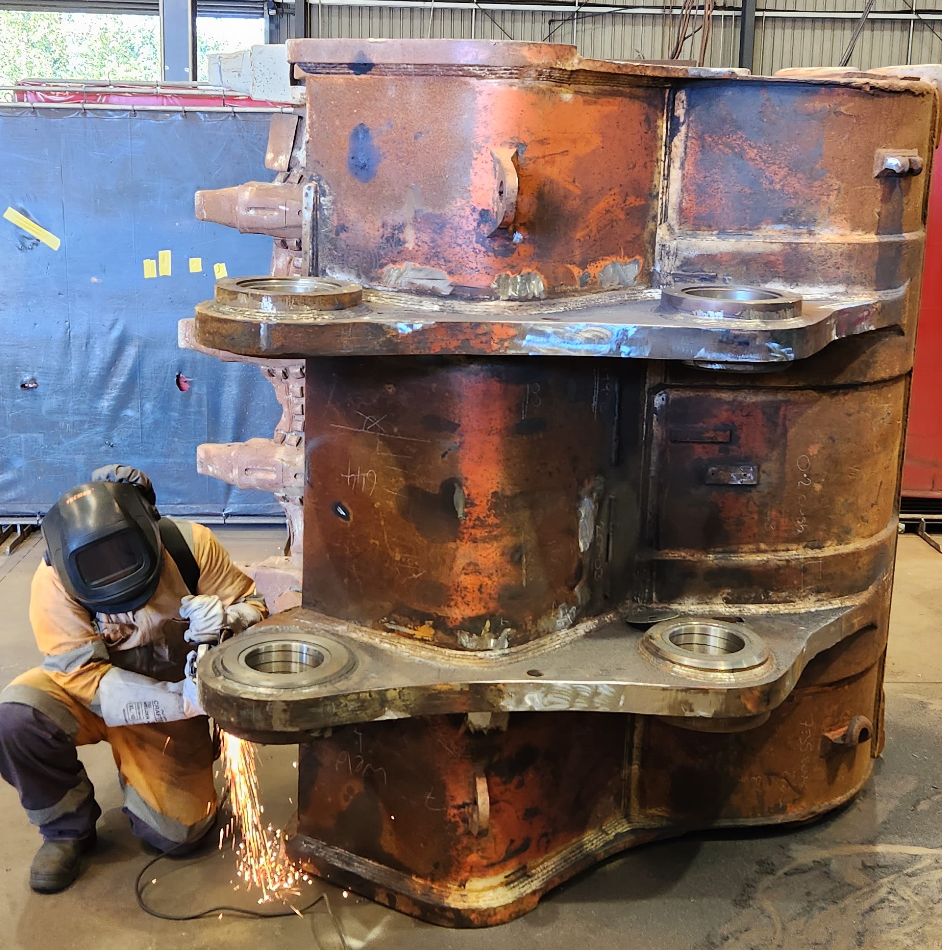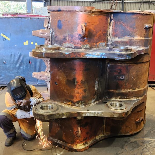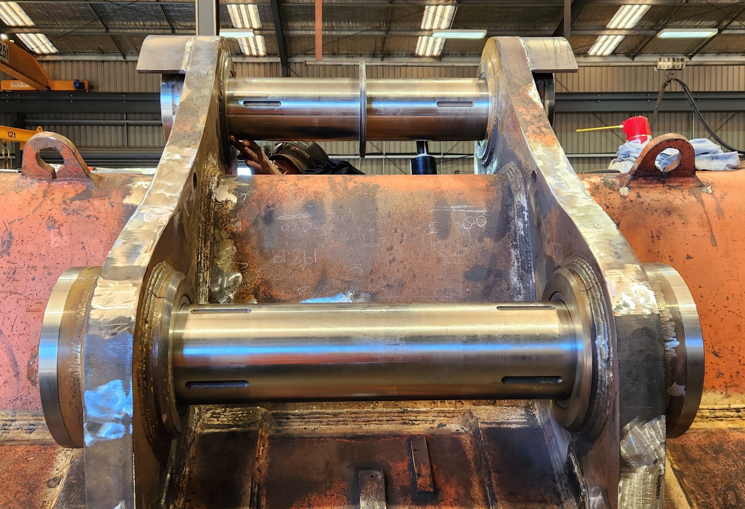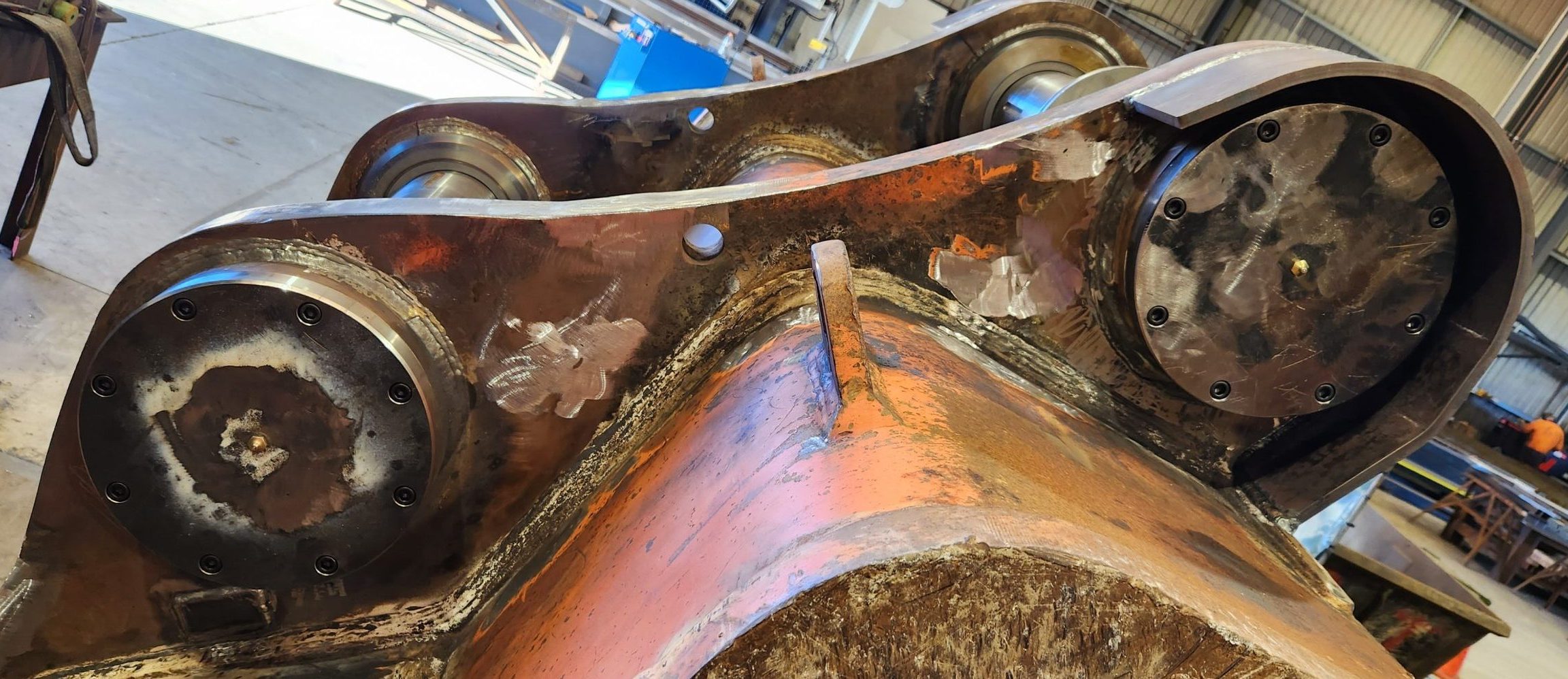 Here’s some pics of a recent project where we converted a Hitachi EX1200 Rock Bucket to fit a Komatsu PC1250. Working with the biggest gold miners in NZ earns us a special place at the business end of their machines!