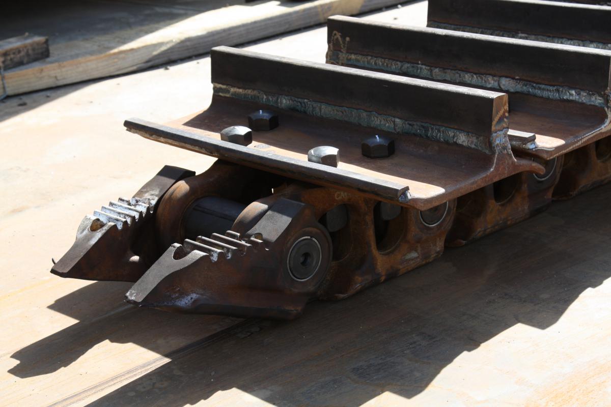West-Trak completed a full pin and bush turn and grouser shoe retread for a set of D10T sealed and lubricated Dozer Chains. Our 400 tonne track press made light work of disassembling this big chain and reassembling it with bushes turned, new seals, oil and plugs. New front and back relug bars were welded to the shoes for extra traction.