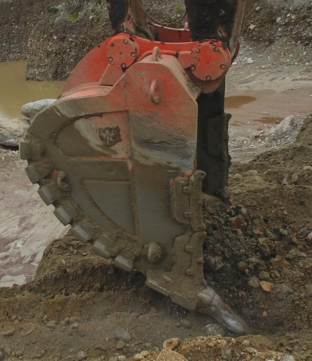 Fitted with a heavy duty, 5.2m3 capacity West-Trak Rock Bucket & weighing approx 7.5 tonnes, this bucket was custom designed and built for a large West Coast gold miner.