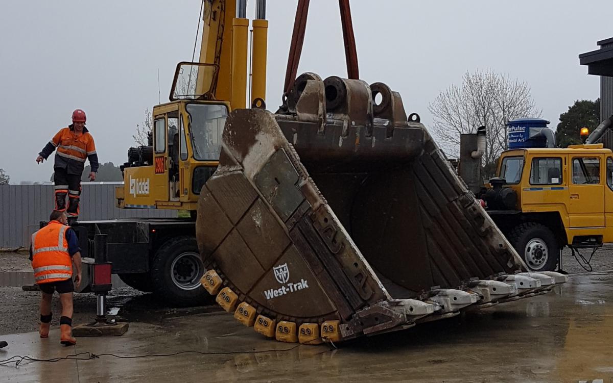 New Zealand’s largest Excavator Bucket, refurbished by West-Trak for OceanaGold, Macreas.