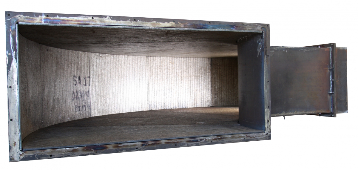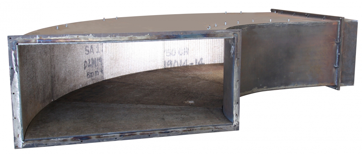 This duct is used for processing all types of heavy scrap steel objects, including crushed car bodies. The ultimate combination of wear steels have been used for this high impact, high abrasion application to provide the longest possible service life.