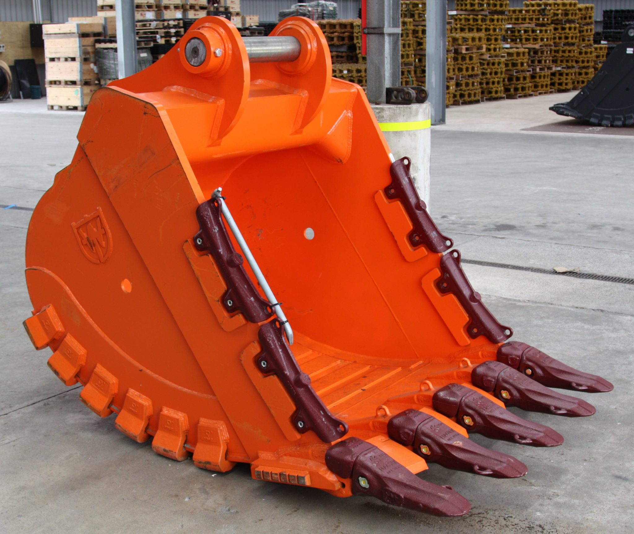 This bucket is fitted with the worlds most trusted MTG hammerless tooth & side protector system for the greatest reliability, longest wear life & guaranteed no loss of teeth! Our Buckets come standard with a weld on wear package inside & outside which includes heel shrouds, wear strips & lip protectors to provide extra wear protection.