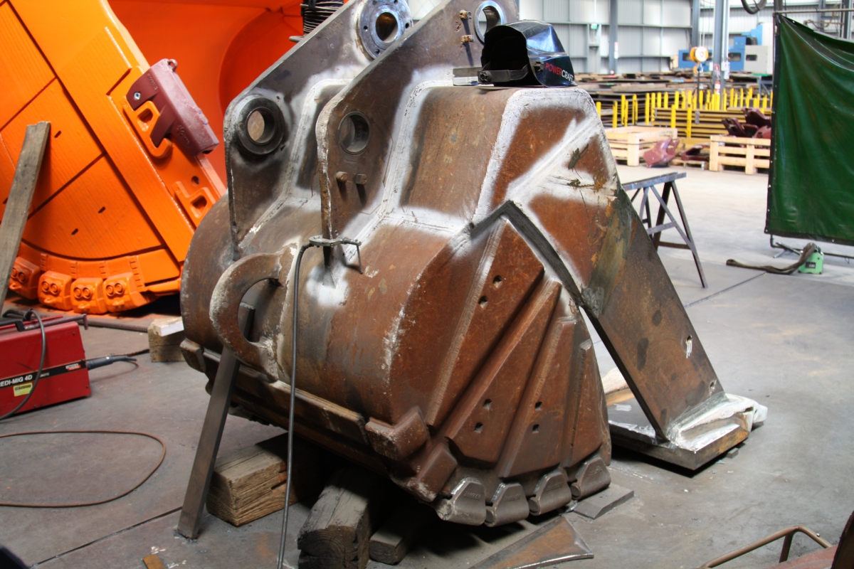 Fresh out of production today, this PC600 rock bucket for Kaipara, Brookby Quarries, has undergone extensive refurbishment to restore it’s full operating capacity. Now fully armoured with a new high tensile, 80mm thick cutting edge, the unrivalled StarMet tooth system and ProMet lip protectors, heel shrouds, side protectors, chock blocks, wear strips and all cracks tested and repaired, this is ready for the rock!