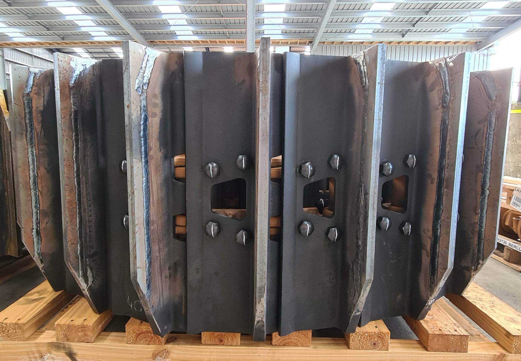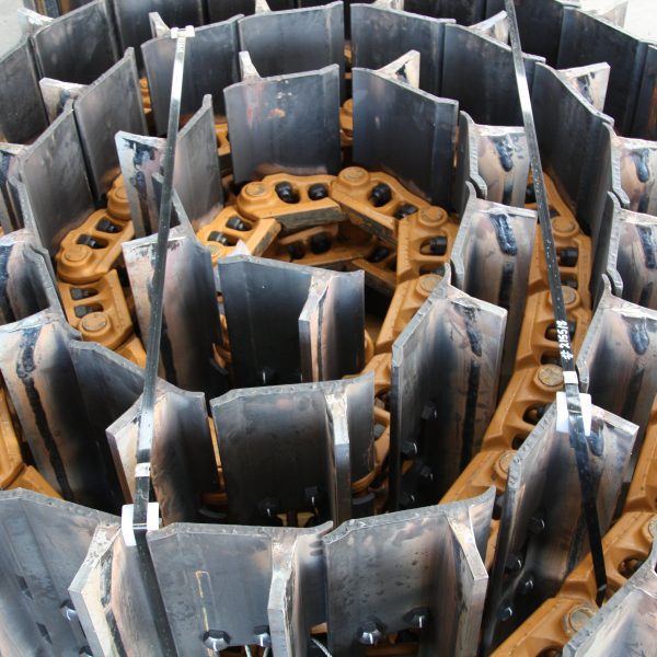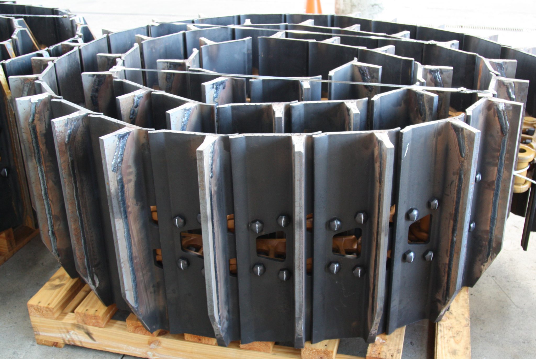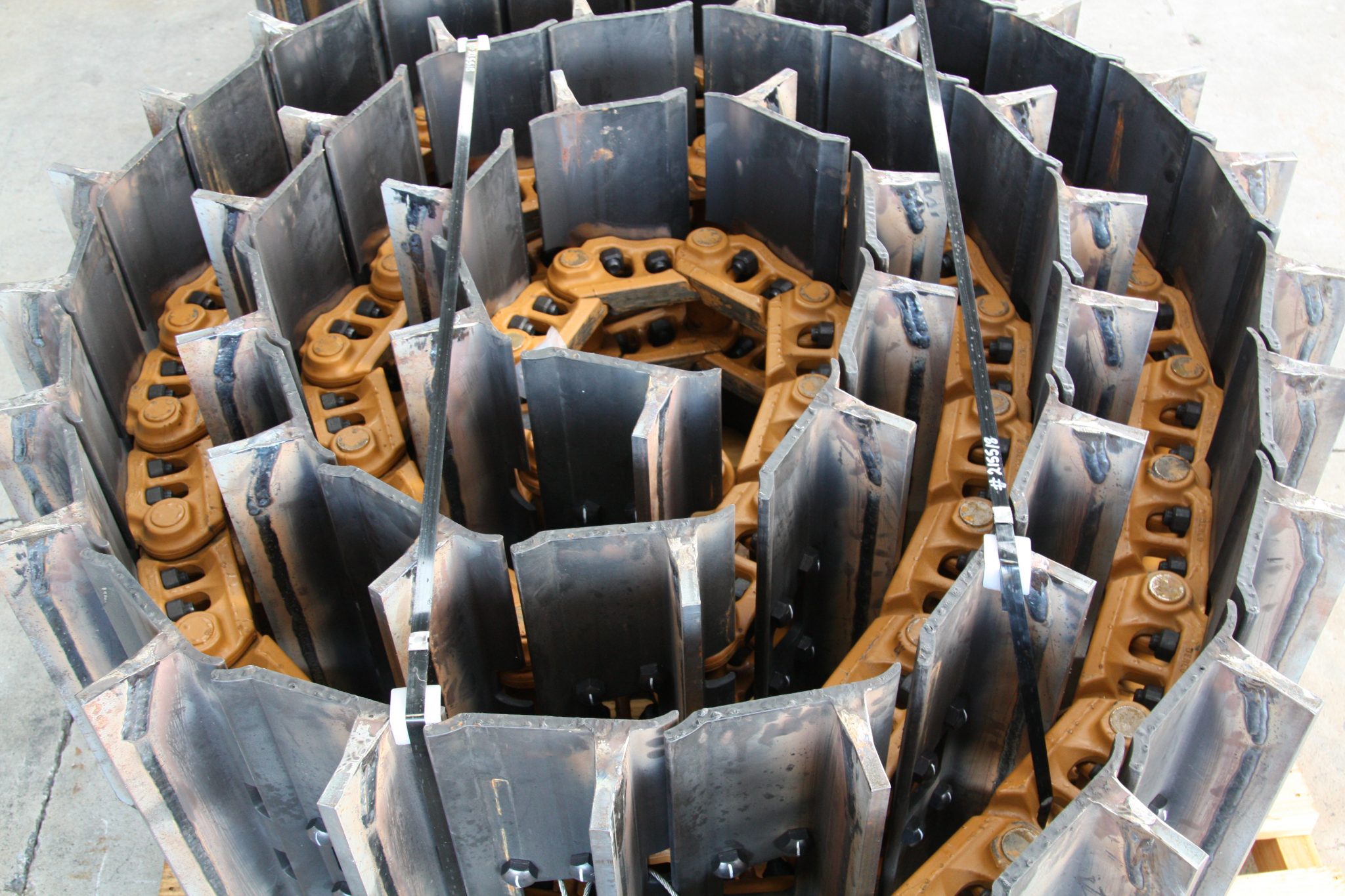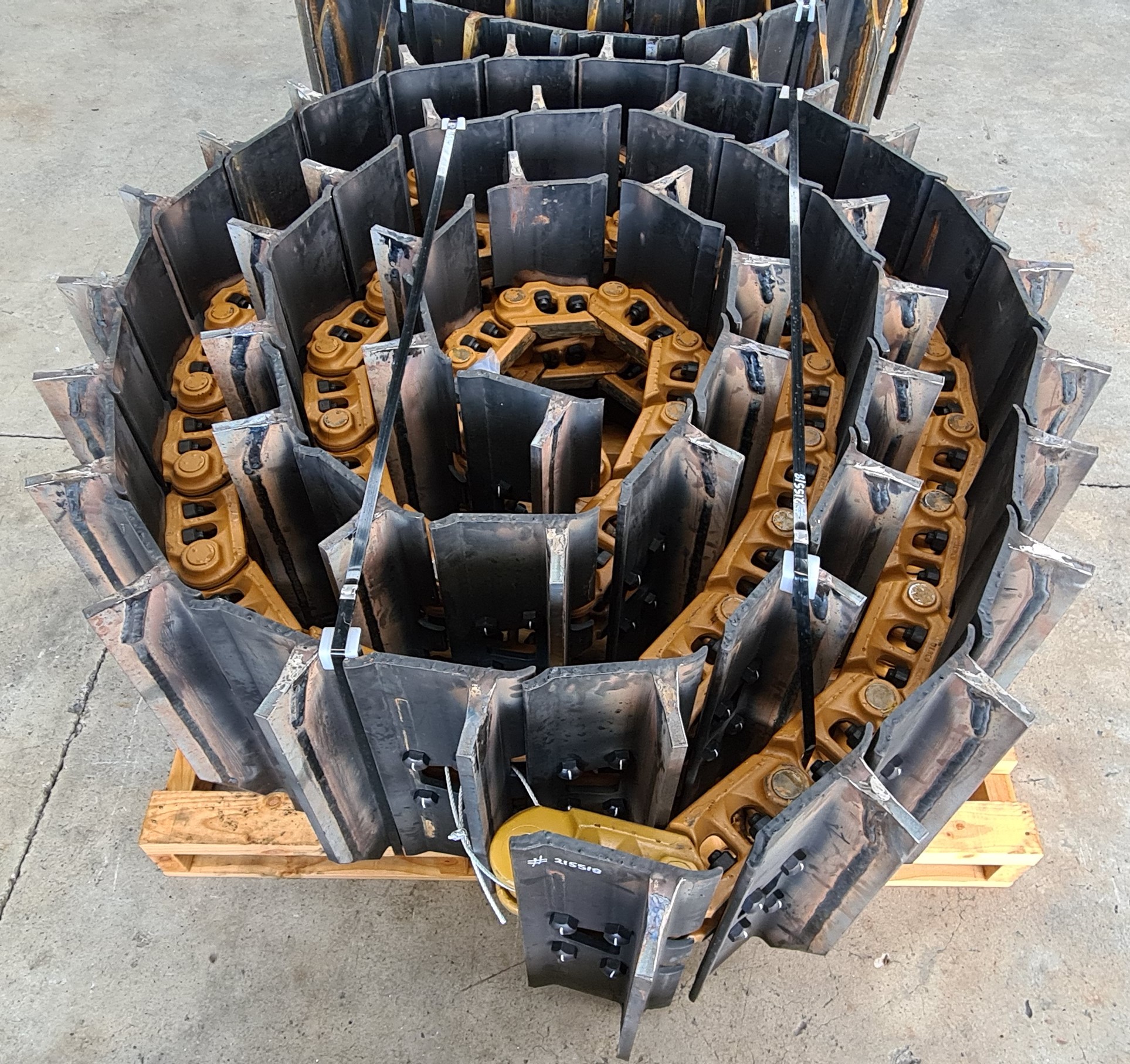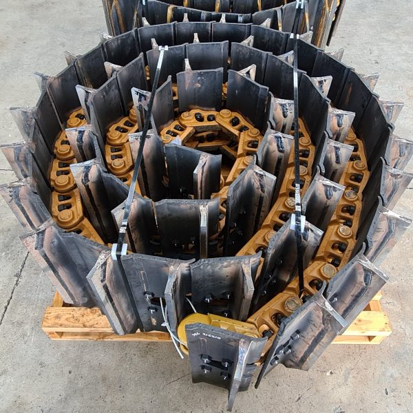 This Track Group is for a Tigercat LS855C and has lug extension plates welded on the shoes to give a total lug height of 110mm high! Fitted with high quality BERCO chains, this machine is going places!