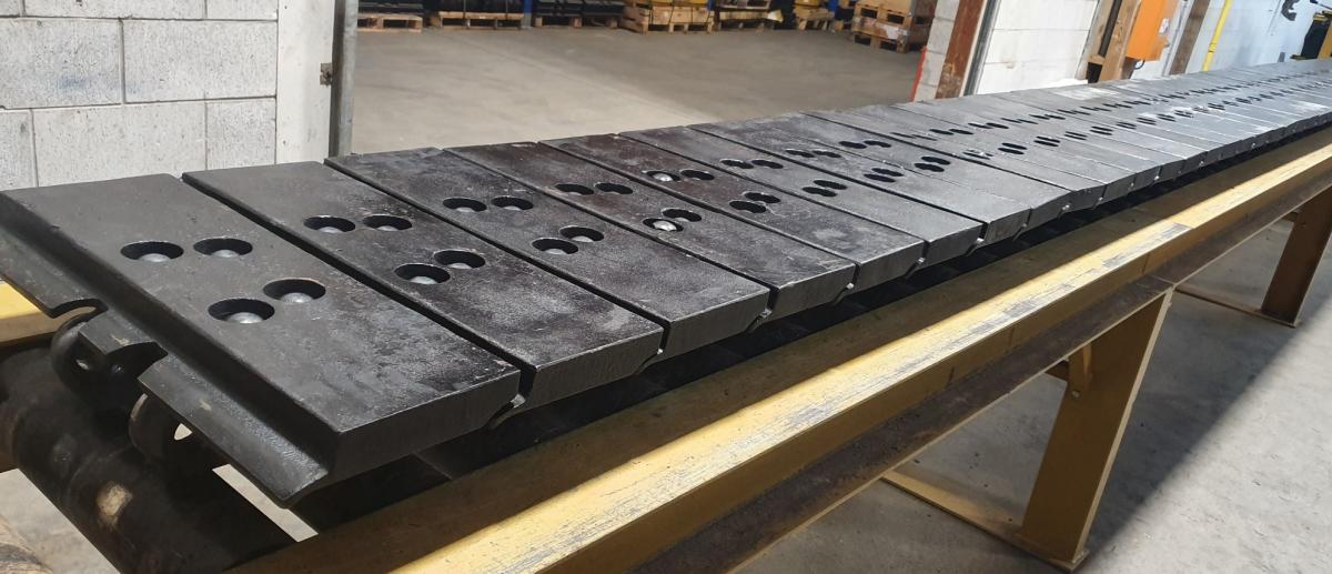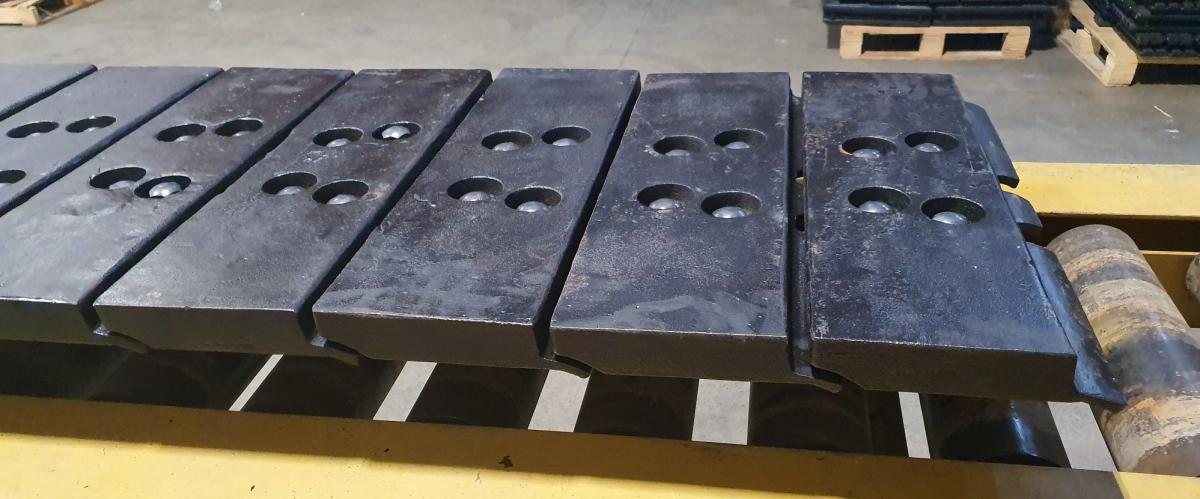 A special flat shoe design was required for this machine working on a concrete pad, to prevent damage to the surface. These track shoes were designed and manufactured to suit our customers needs.