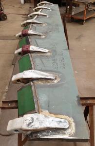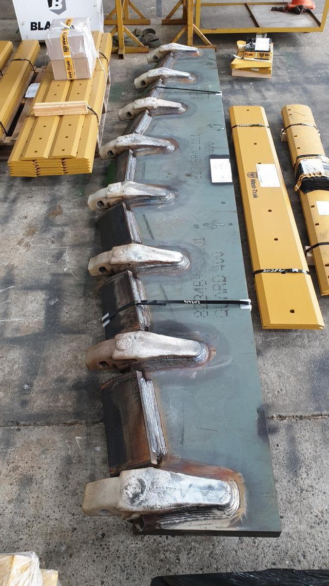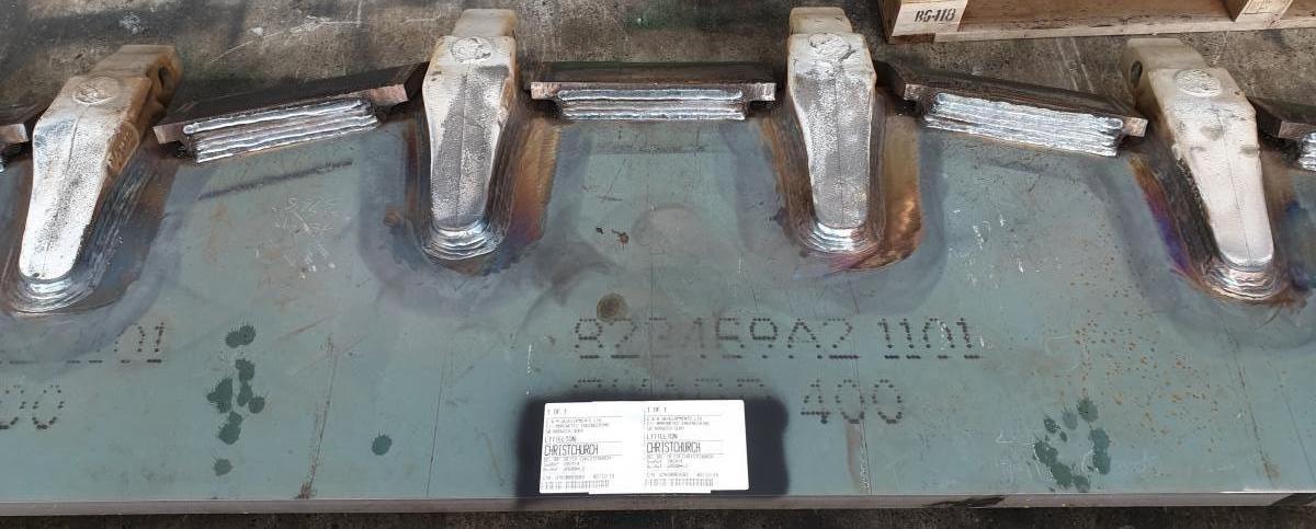 This 3800mm wide, 50mm thick, G450 spade edge was profile cut & beveled with 8x MTG Starmet Adapters & lip protectors fitted on. This will be fitted a large rock bucket working in the hardest and most abrasive basalt rock, where only the best steels and Tooth systems survive.