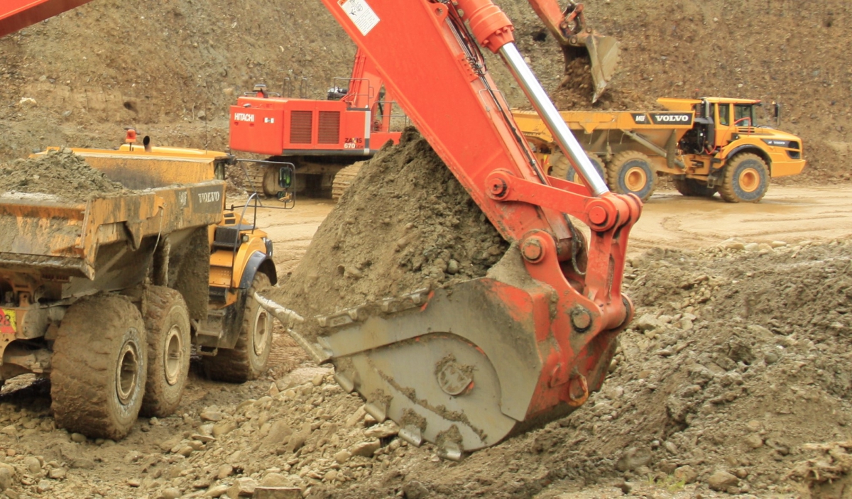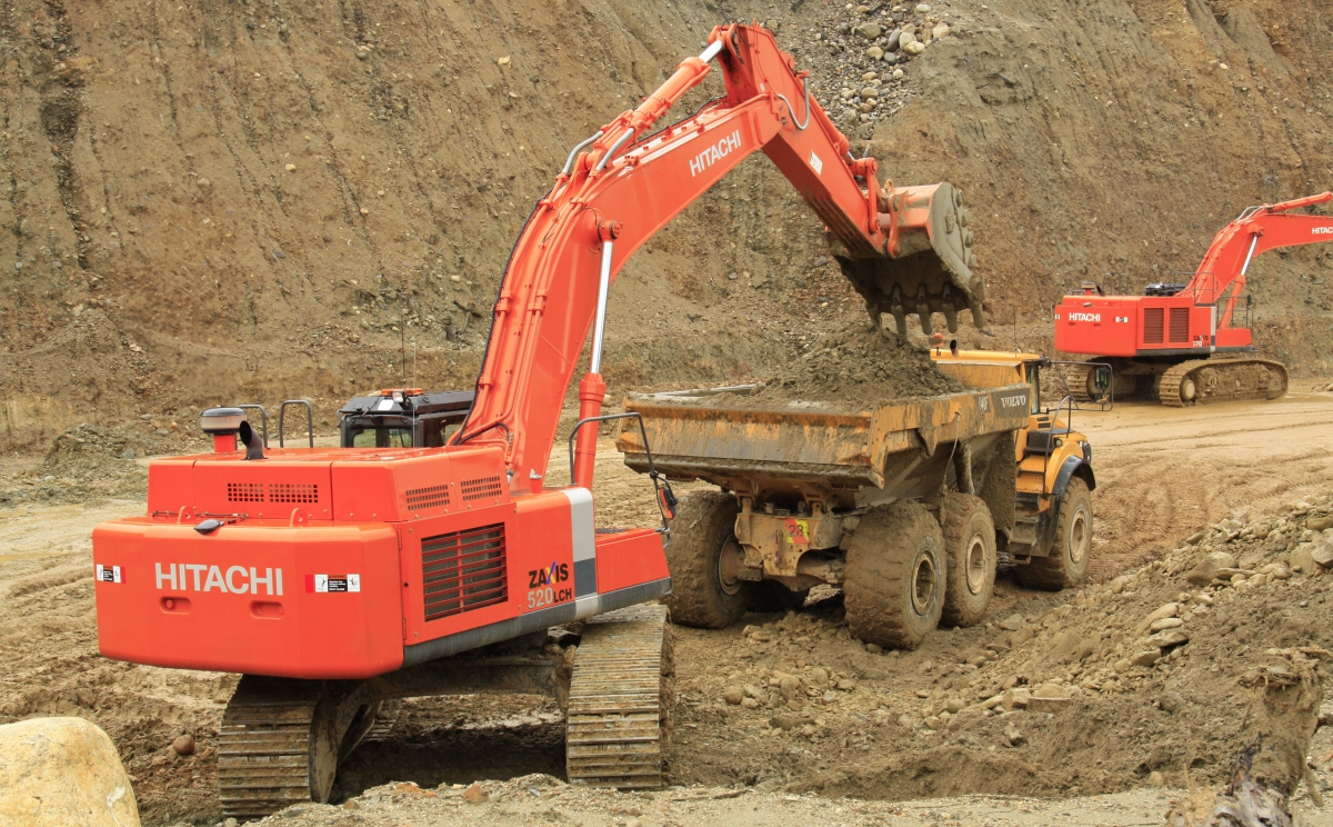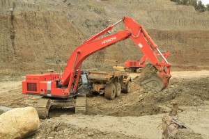 Birchfield Ross Mining’s brand new Hitachi ZX520LCH-5 Excavator, working at the Ross Gold mine. This machine has only done 350 hours and the heavy duty West-Trak Bucket is performing very well.
